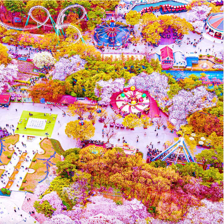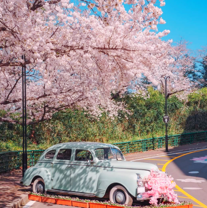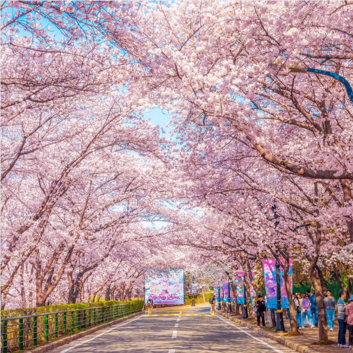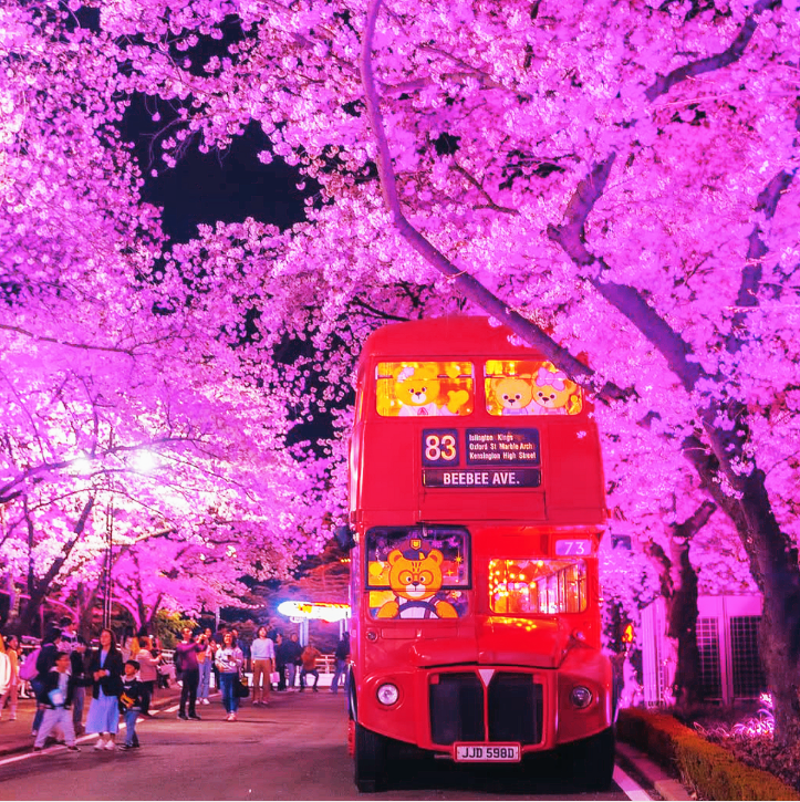 낮에는 핑크색 벚꽃을, 밤에는 라이팅 쇼와 함께 화려한 빛으로 물든 벚꽃의 색다른 모습도 즐길 수 있다.